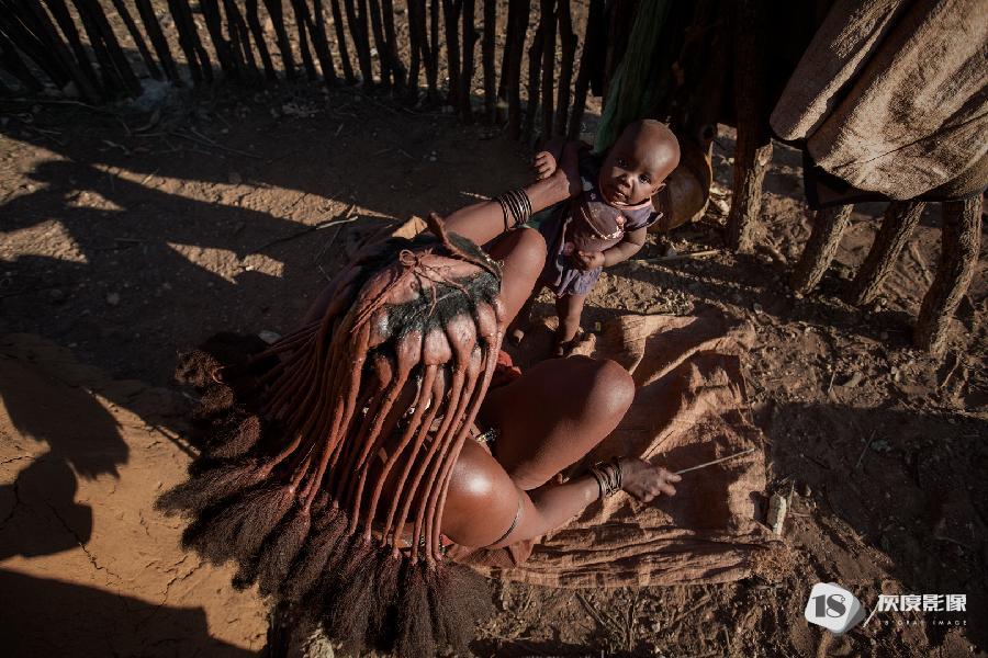 随着现代文明的介入,辛巴妇女会用干净的布匹包裹着出生的孩童,会用鲜艳的色彩来装点自己,然而部落里的老者,终其一生,依然守护着红泥人的传统。
