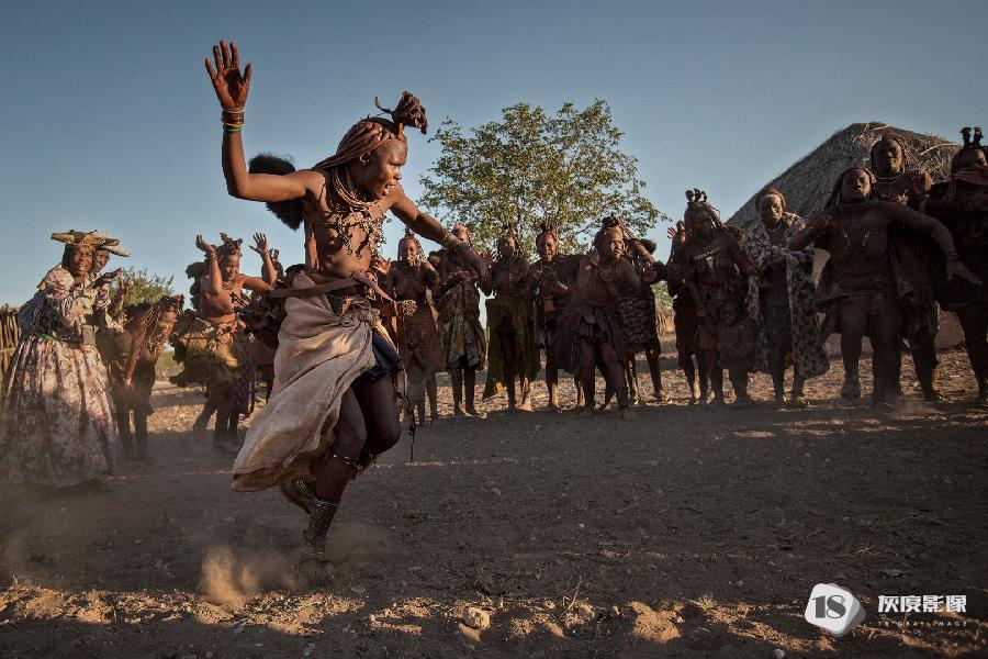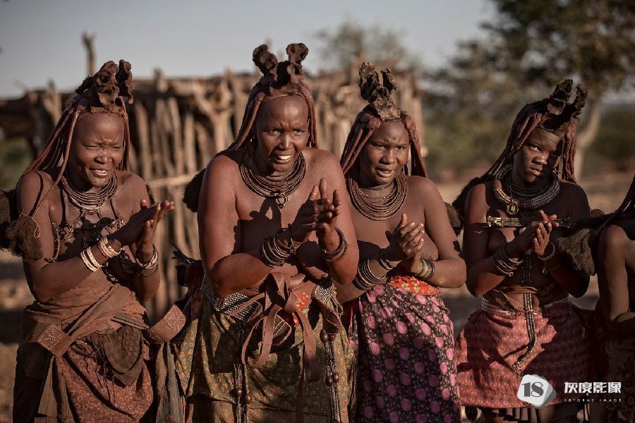 偶有节庆日,排成略有弧形的一排女人,在集体强有力的掌声中,轮流上阵手舞足蹈。踩着迅急的节奏,快速扭动全身满场跑动,跺脚的劲儿让尘土飞扬,辛巴女人通过掌声控制节拍,散发激情。